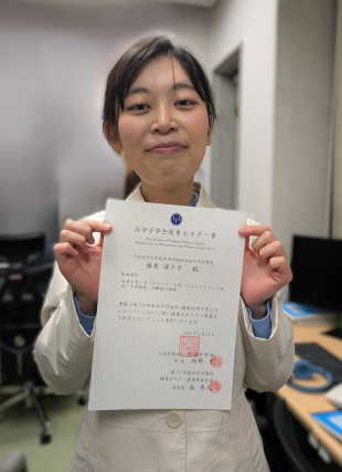 本研究科学生が、2025年9月16日(火)~18日(木)に関西大学千里山キャンパス(大阪府吹田市)にて開催された高分子学会第74回高分子討論会において優秀ポスター賞を受賞しました。